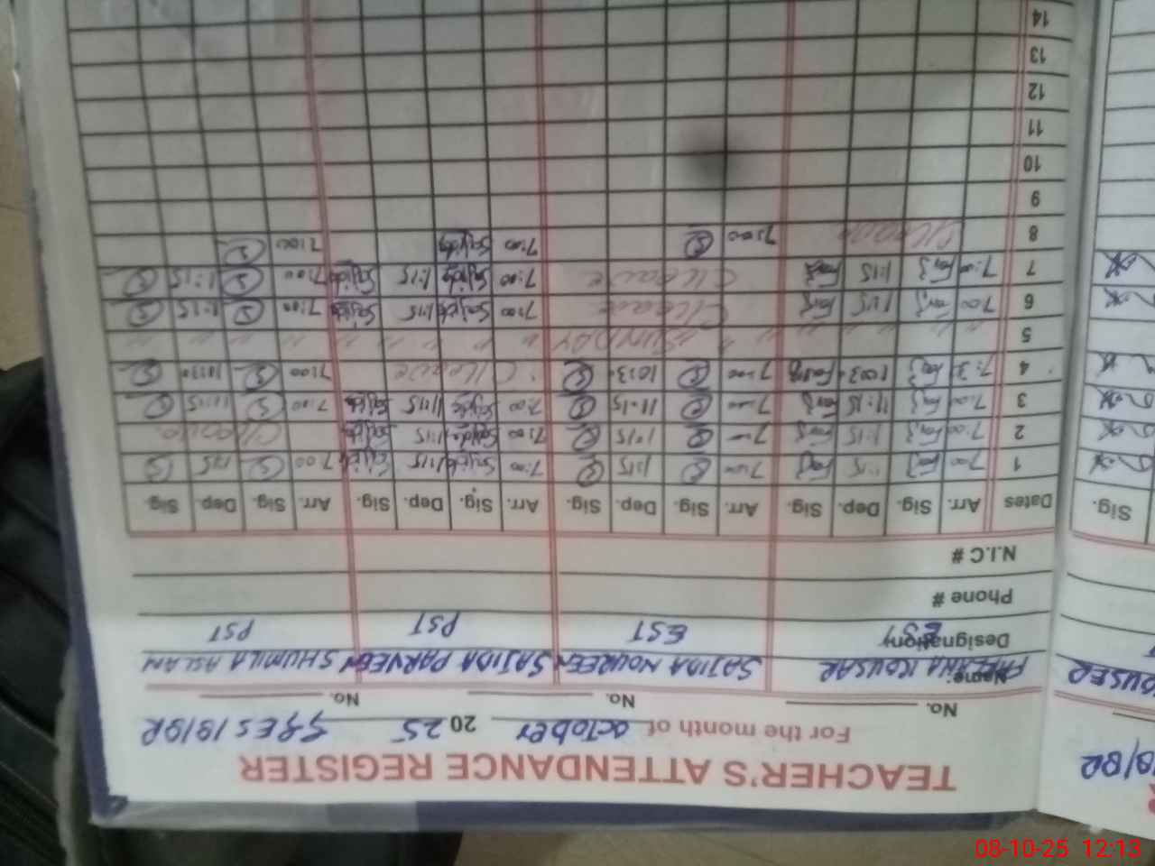 | Name: AB**** BA**** Designation: (School Headmaster's/Headmistress's) S.S.T.(GENERAL) Phone/Cell Number: 03**** |