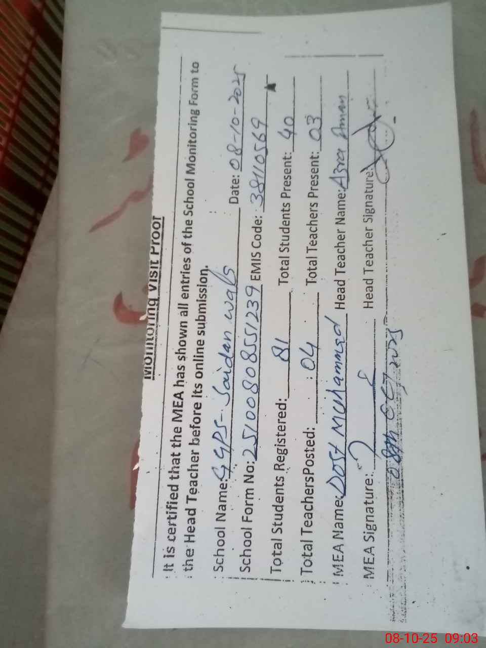 | EMIS Code: 38110569 | Name of School: GGPS SAIDAN WALA | |||