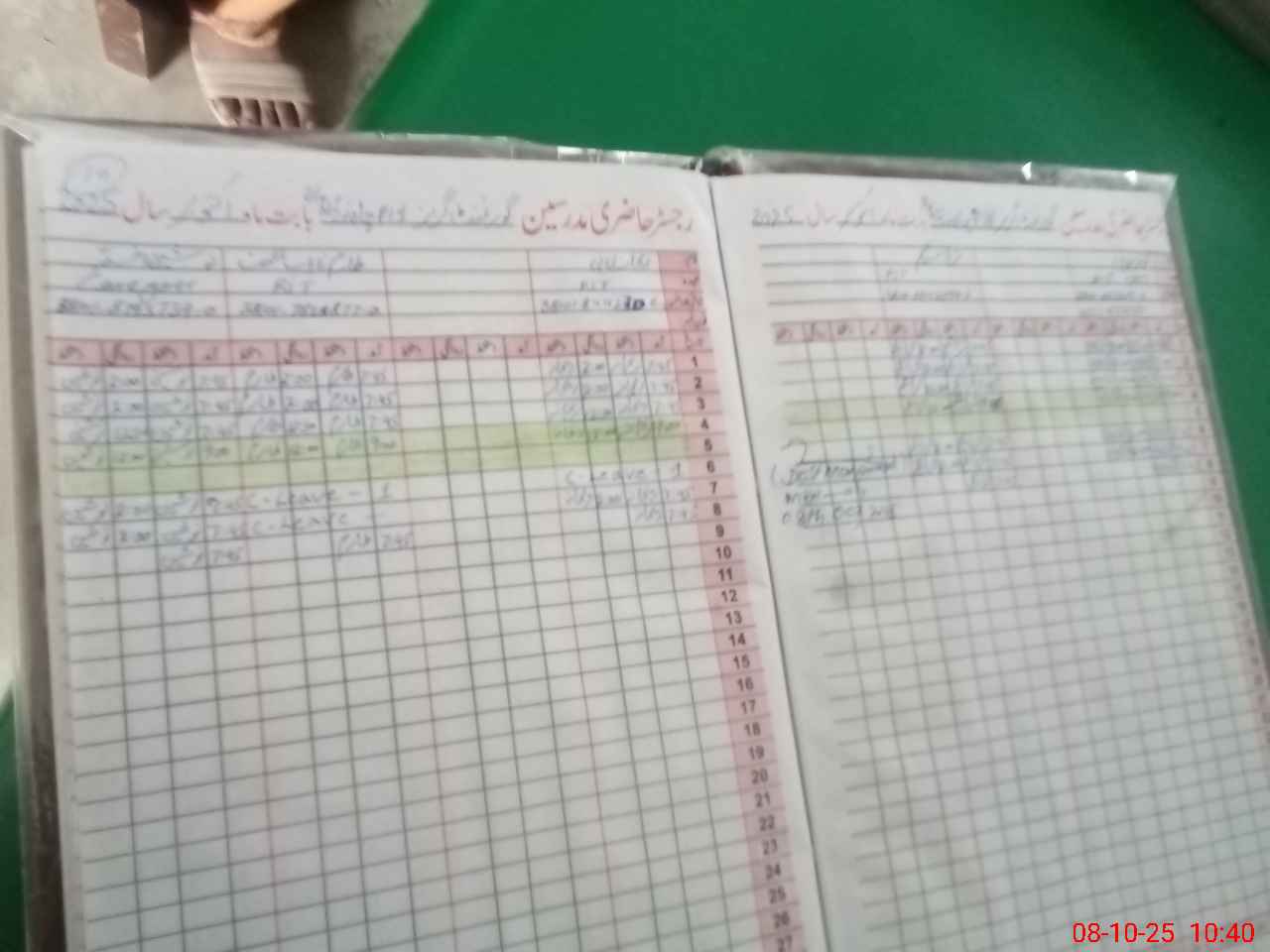 | CNIC | Full Name | Designation | R/C | Absence During Last Calender Month |