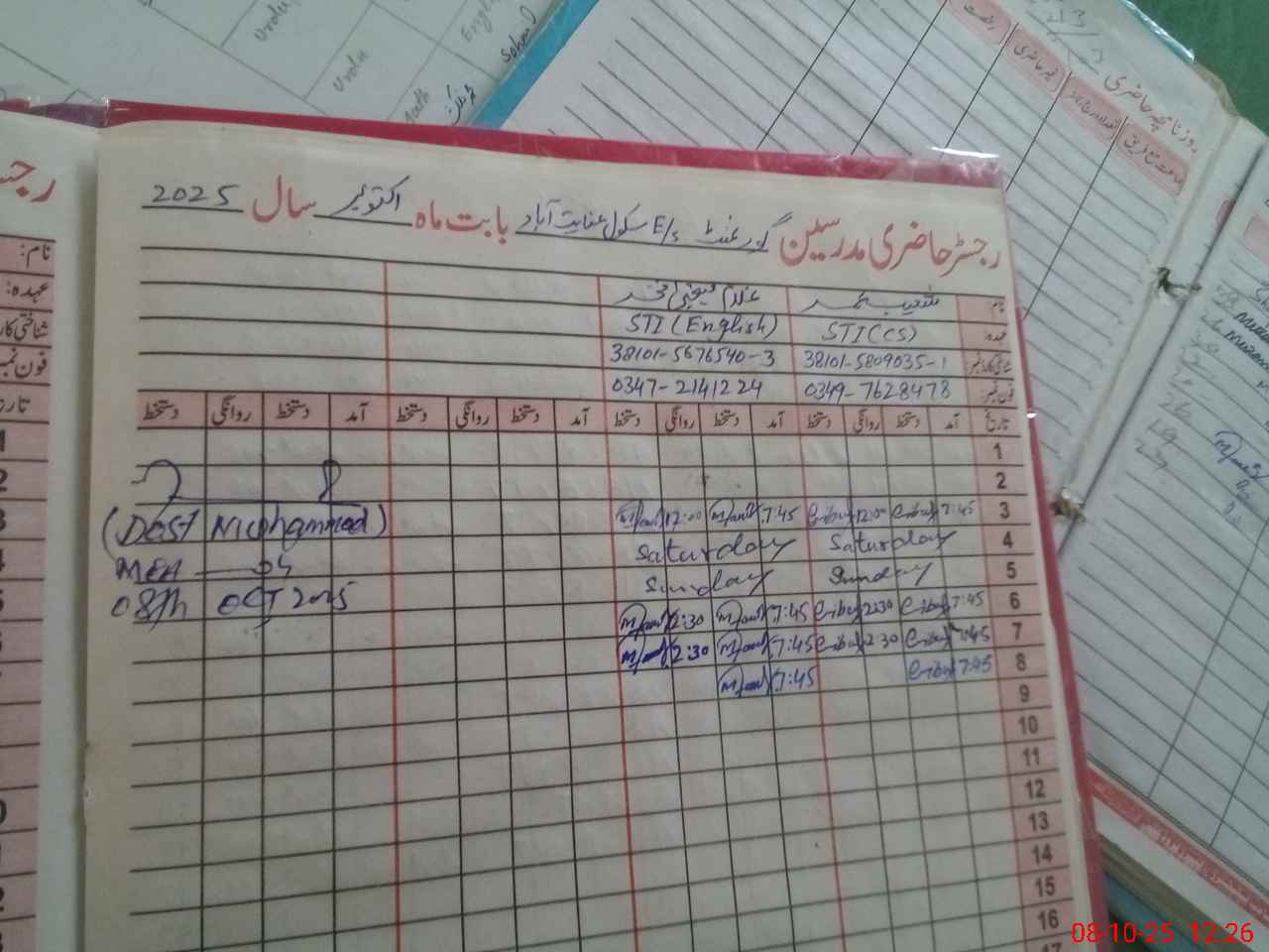 | Name: Mu**** Fa**** Sh**** Designation: (School Headmaster's/Headmistress's) PST Phone/Cell Number: 03**** |