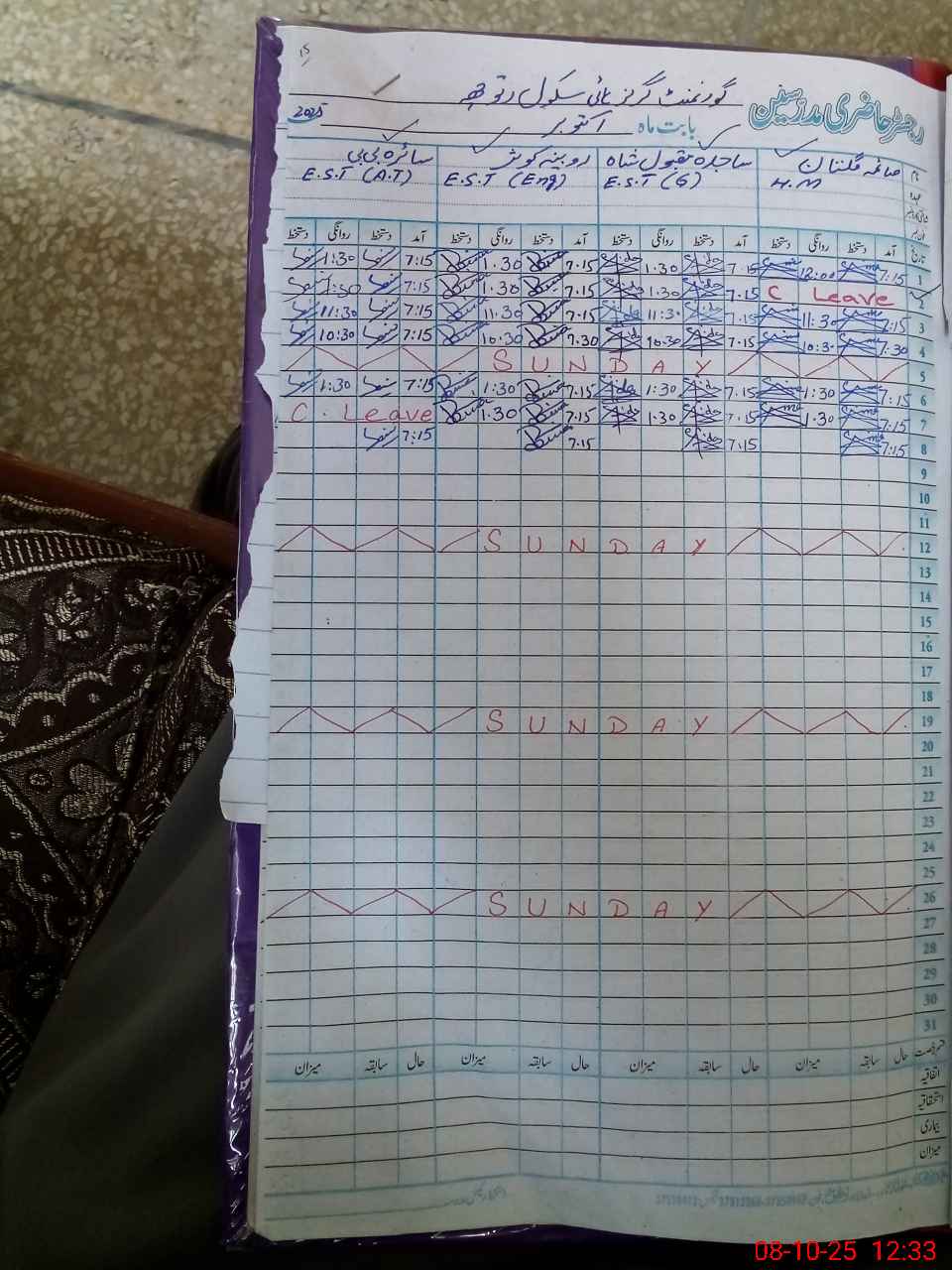 | Leave | Duty | Absent | Maternity | Medical | Ex- Pak |