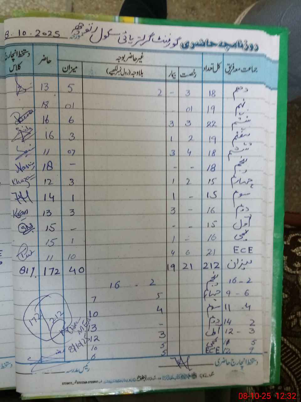 | ECE | Un-admt | K | 1 | 2 | 3 | 4 | 5 | 6 | 7 | 8 | 9 | 10 | Total | |||