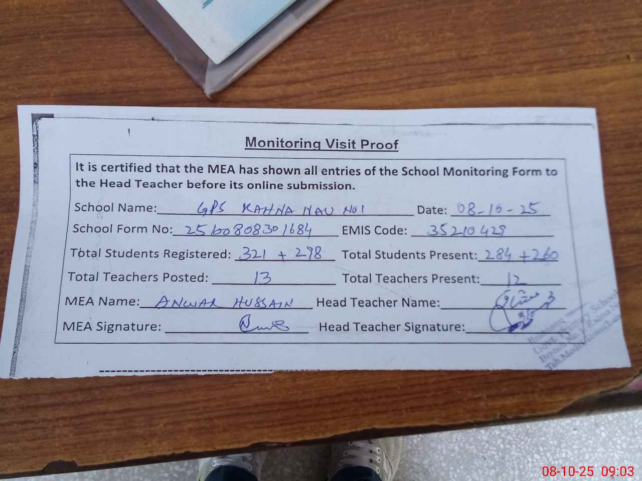 | EMIS Code: 35210429 | Name of School: GPS KAHNA NAU NO.1 | |||