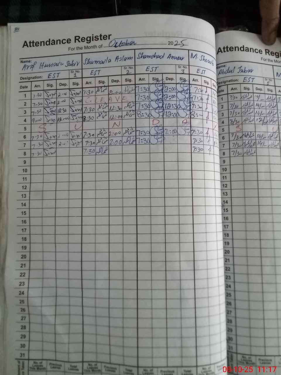 | 35**** | Mu**** Ab**** Ak**** | PST | Regular | 1 | 2 | 0 | 0 | 0 | 0 | 0 | 0 | 1 | Exam Duty |