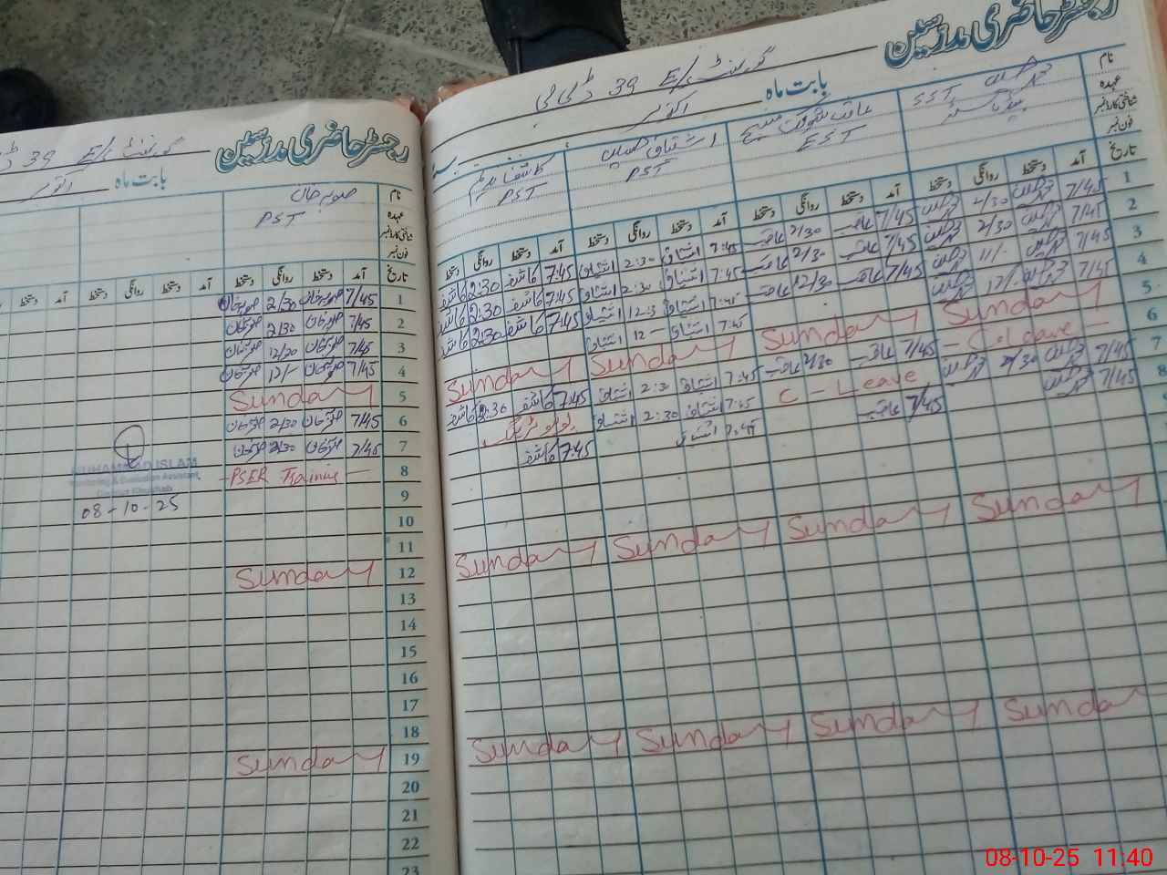 | CNIC | Full Name | Designation | R/C | Absence During Last Calender Month |