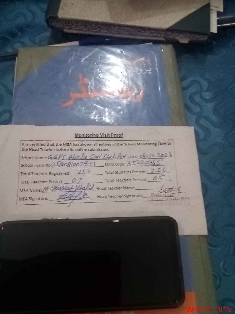 | Attendance Register | Head Teacher | MEA with School | Visit Proof |