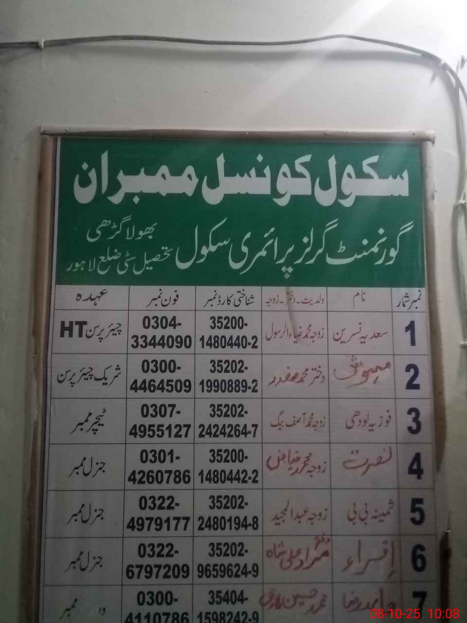 | Name: SA**** NA**** Designation: (School Headmaster's/Headmistress's) PST Phone/Cell Number: 03**** |