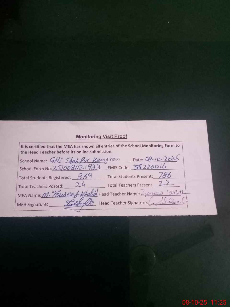 | Certified that this School was Inspected by the Undersigned MEA/DMO Today and the Information Stated Above is as Per Record. | |||||