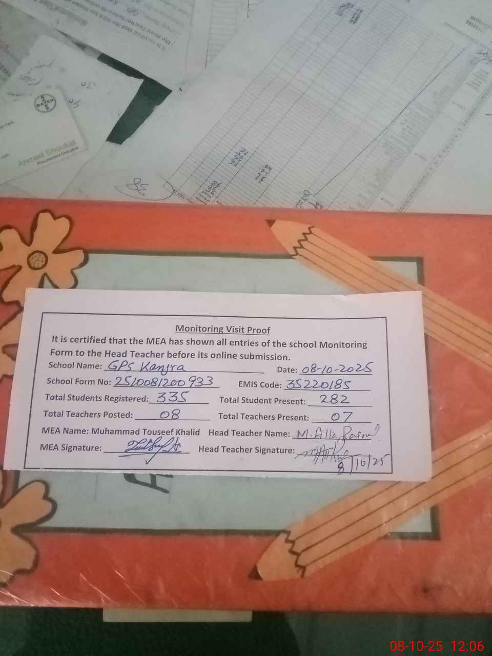 | EMIS Code: 35220185 | Name of School: GPS KANJRA | |||