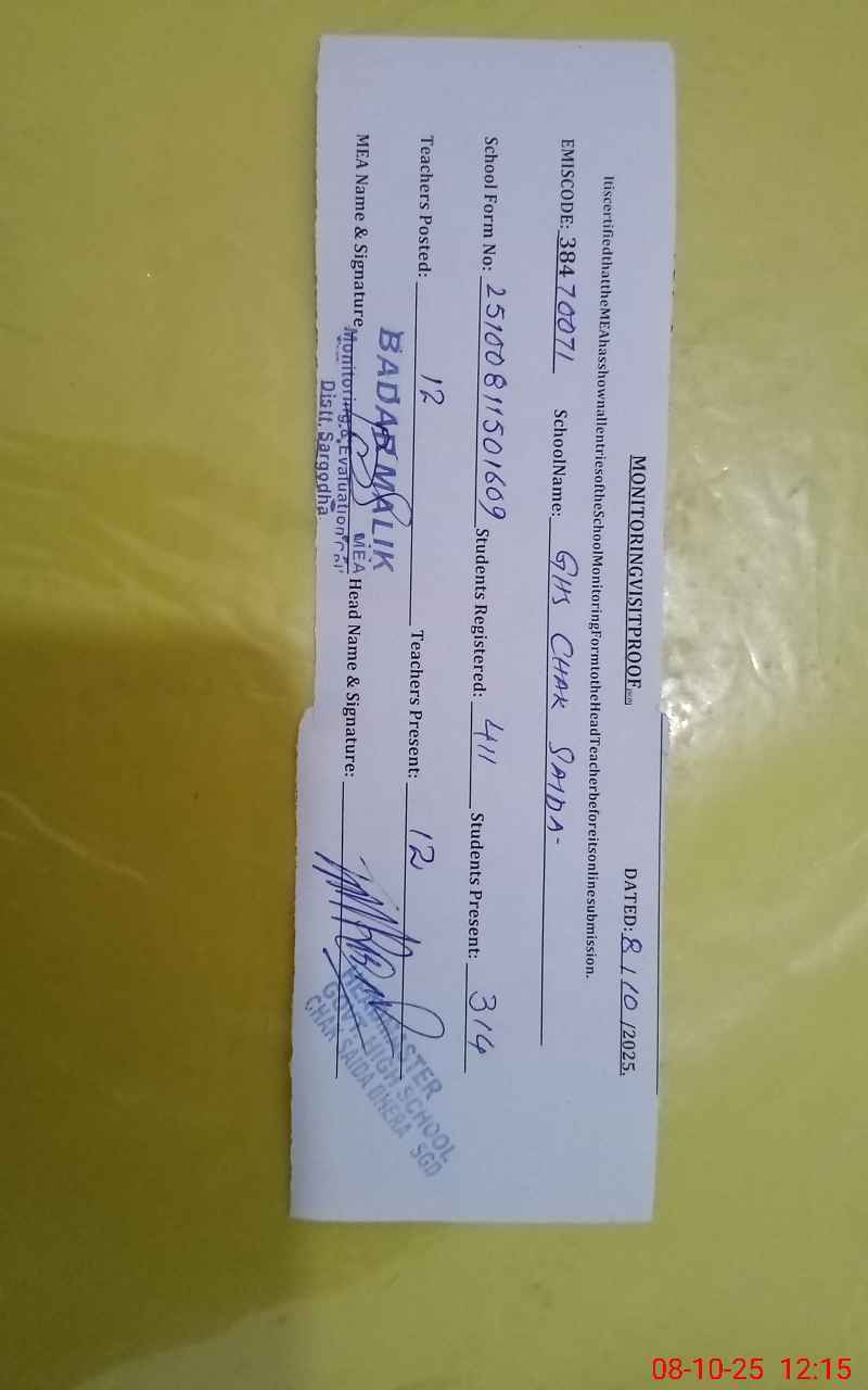 | EMIS Code: 38470071 | Name of School: GHS CHAK SAIDA | |||