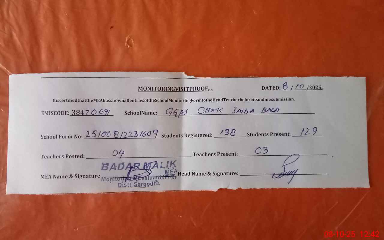 | EMIS Code: 38470691 | Name of School: GGPS CHAK SAIDA BALA | |||