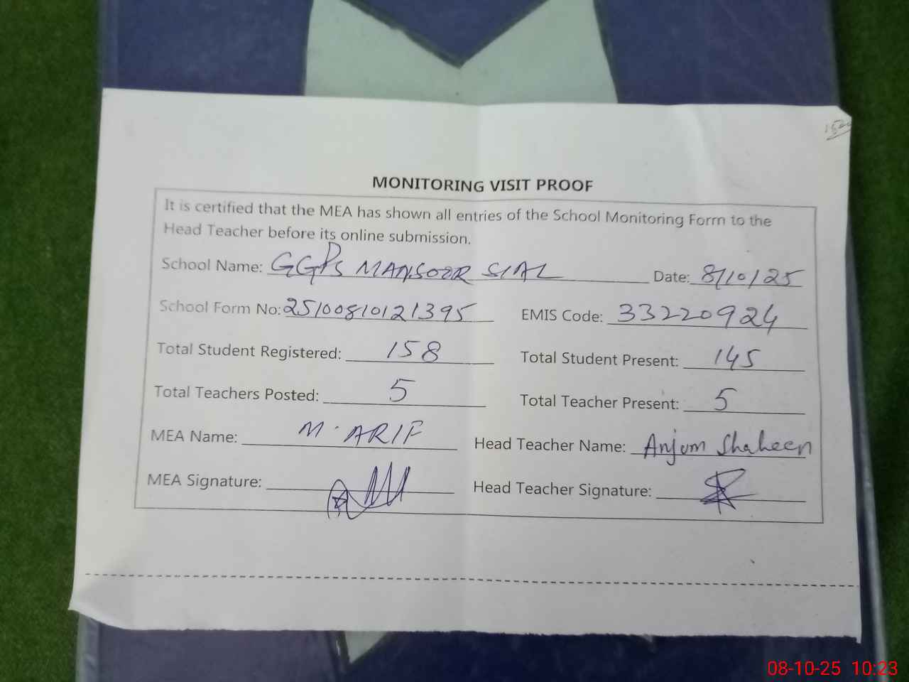 | EMIS Code: 33220924 | Name of School: GGPS MANSOOR SIAL | |||