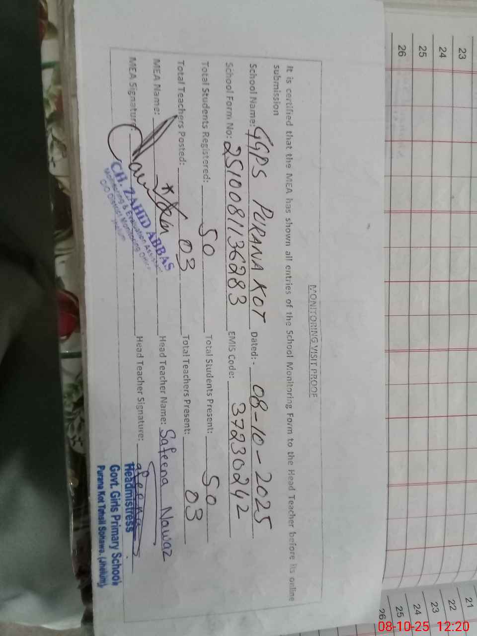 | EMIS Code: 37230242 | Name of School: GGPS PURANA KOT | |||