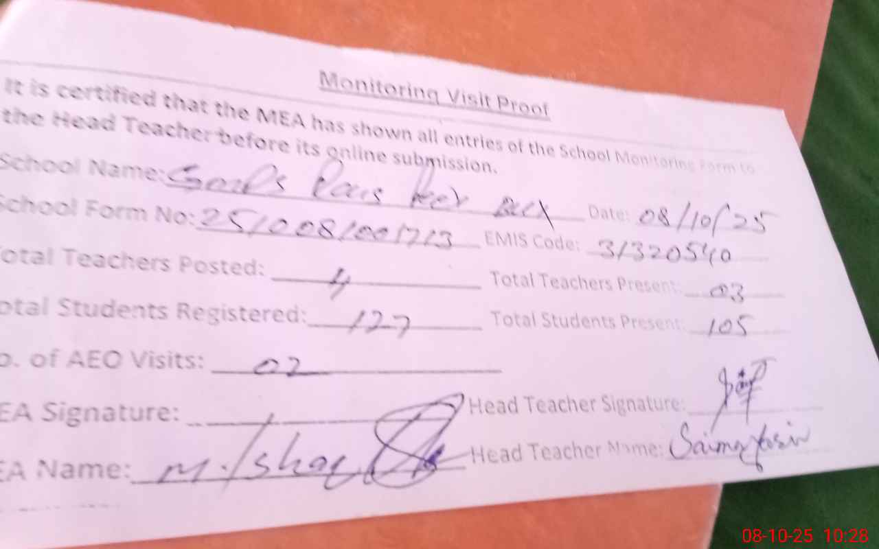 | Attendance Register | Head Teacher | MEA with School | Visit Proof |
