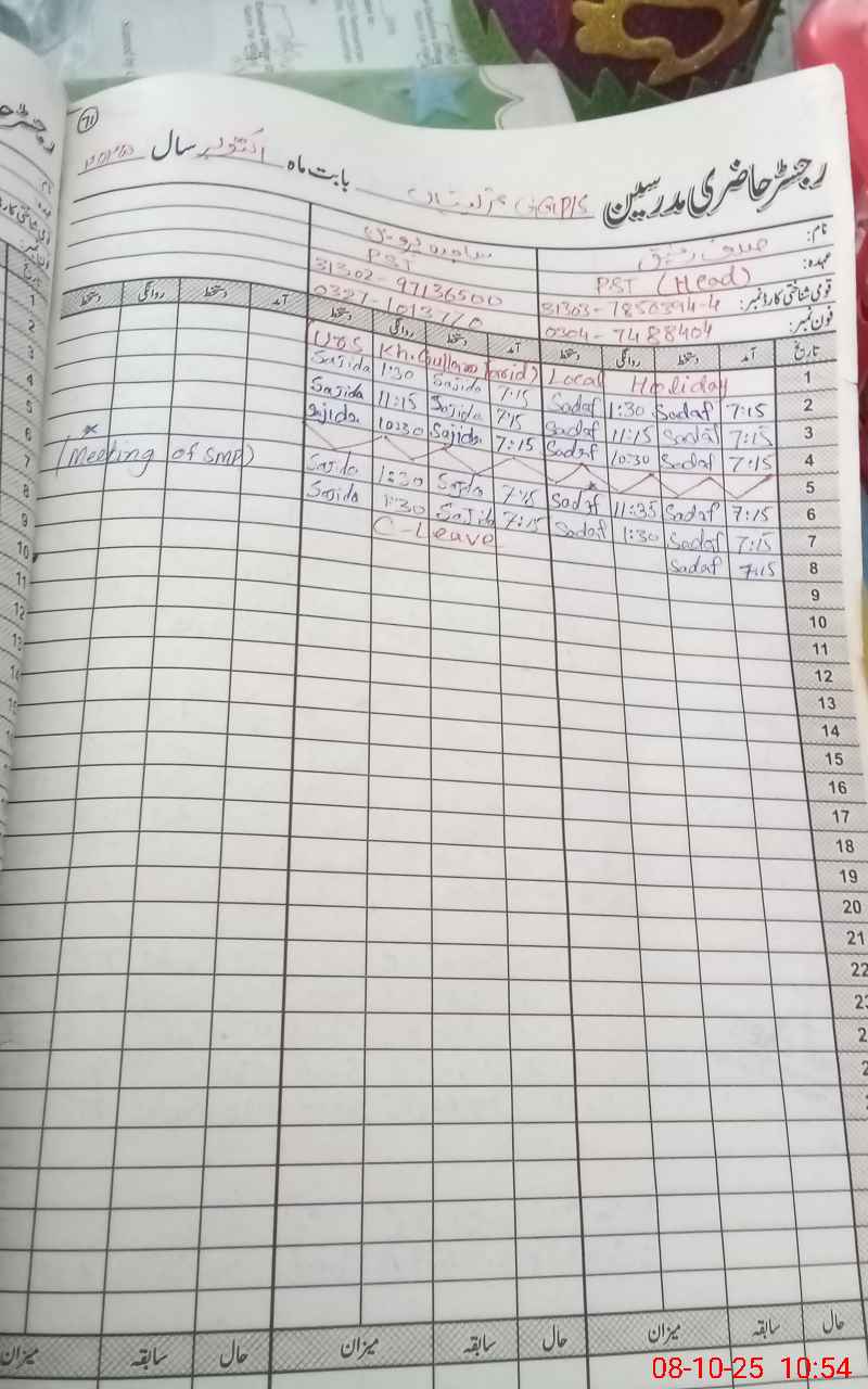 | Name: SA**** RA**** Designation: (School Headmaster's/Headmistress's) PST Phone/Cell Number: 03**** |