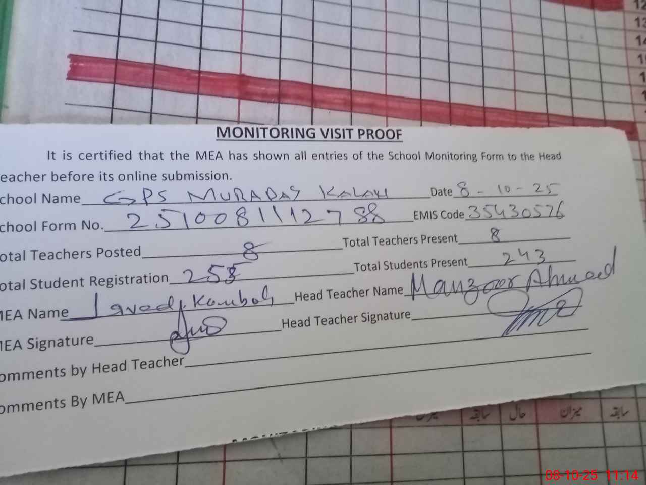 | EMIS Code: 35430576 | Name of School: GPS MURADAY KALAN | |||