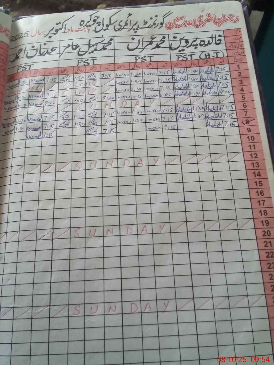 | CNIC | Full Name | Designation | R/C | Absence During Last Calender Month |
