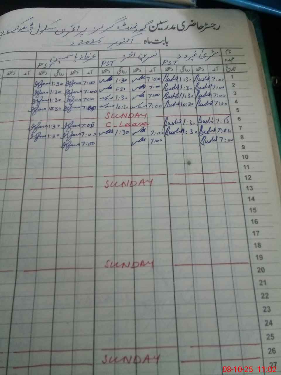 | CNIC | Full Name | Designation | R/C | Absence During Last Calender Month |