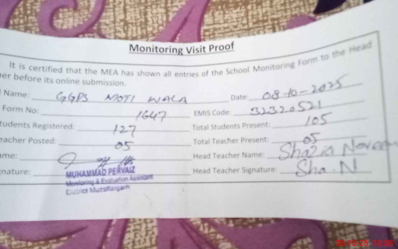 | EMIS Code: 32320521 | Name of School: GGPS MOTI WALA | |||