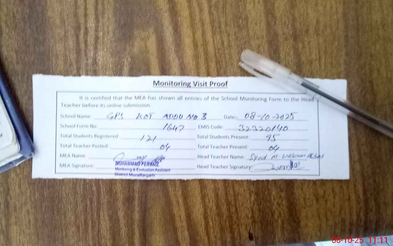 | EMIS Code: 32320140 | Name of School: GPS KOT ADU NO. 3 | |||