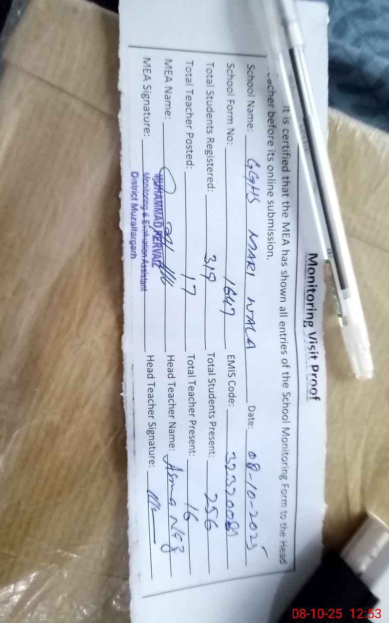 | EMIS Code: 32320081 | Name of School: GGHS MARI WALA | |||