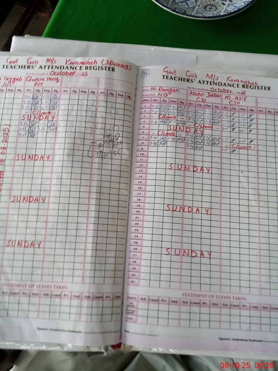 | CNIC | Full Name | Designation | R/C | Absence During Last Calender Month |