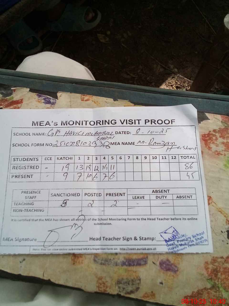 | EMIS Code: 36410235 | Name of School: GPS HAVELI MUBARAK SHAH, SARAI SIDHU | |||