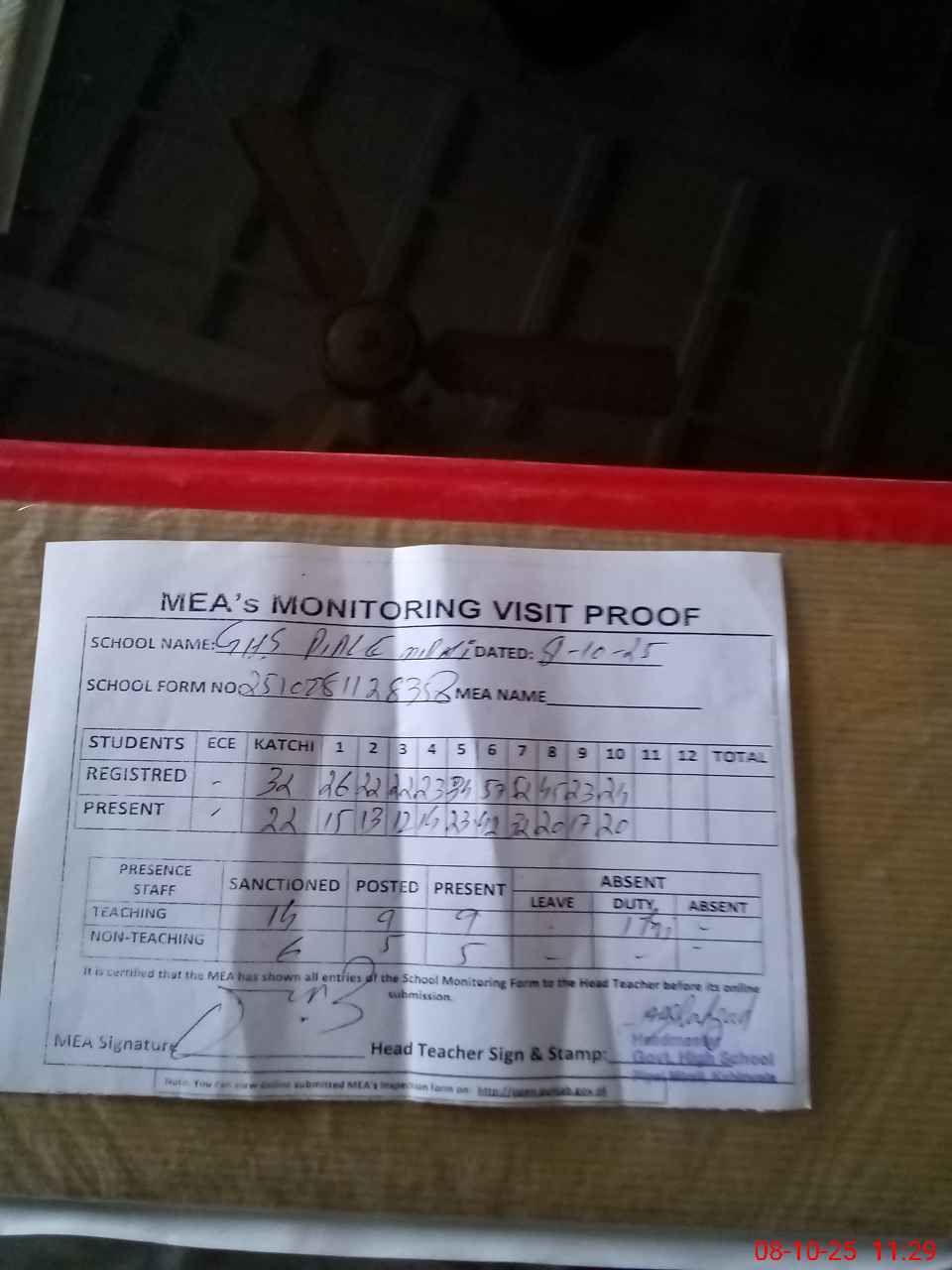 | Certified that this School was Inspected by the Undersigned MEA/DMO Today and the Information Stated Above is as Per Record. | |||||