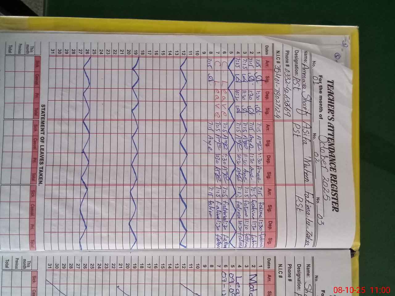 | Name: AM**** SH**** Designation: (School Headmaster's/Headmistress's) PST Phone/Cell Number: 03**** |