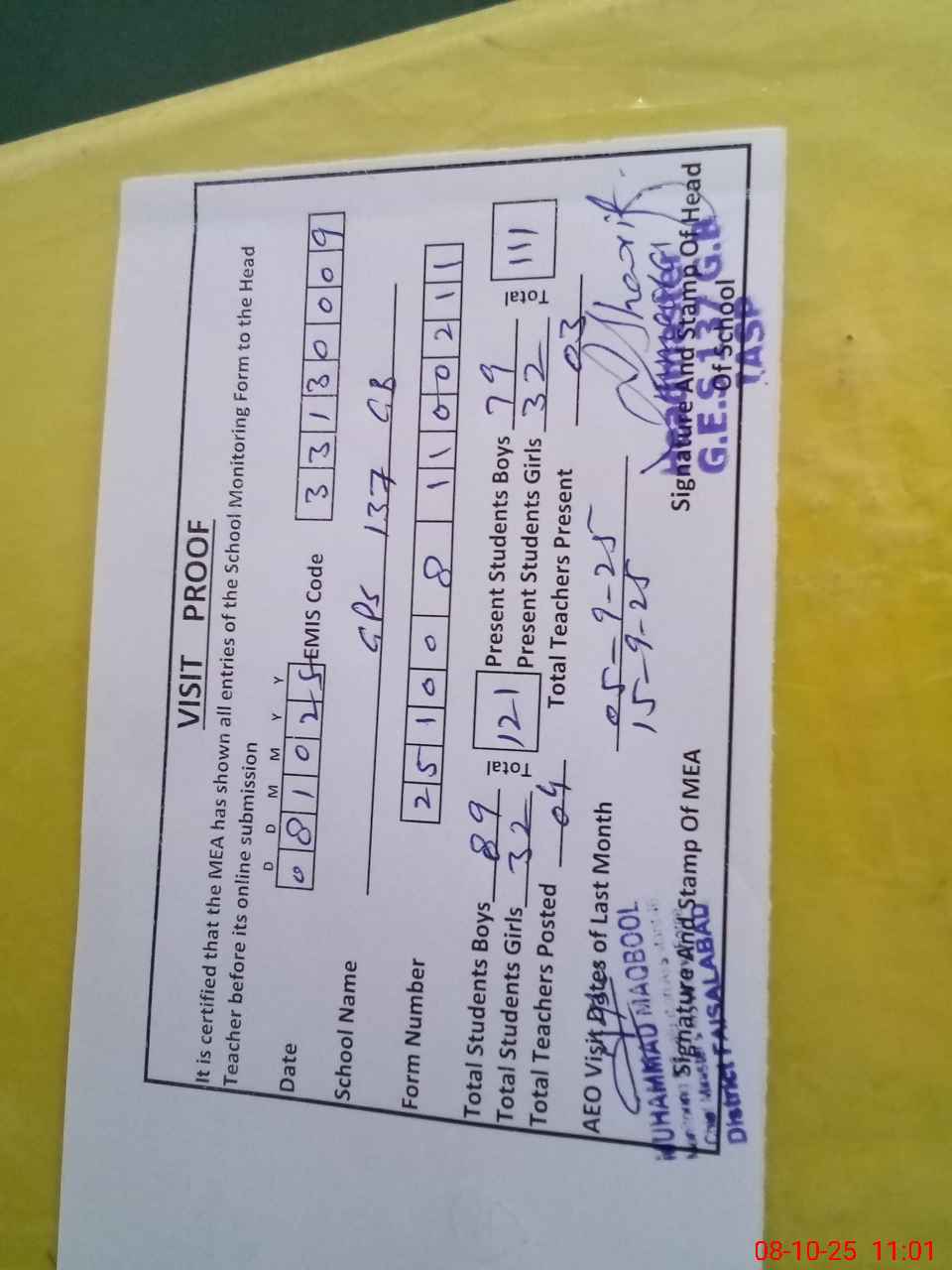 | EMIS Code: 33130009 | Name of School: GPS CHAK 137 GB I SAMUNDRI | |||