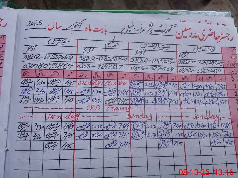| Name: Sh**** Al**** Designation: (School Headmaster's/Headmistress's) Pst Phone/Cell Number: 03**** |