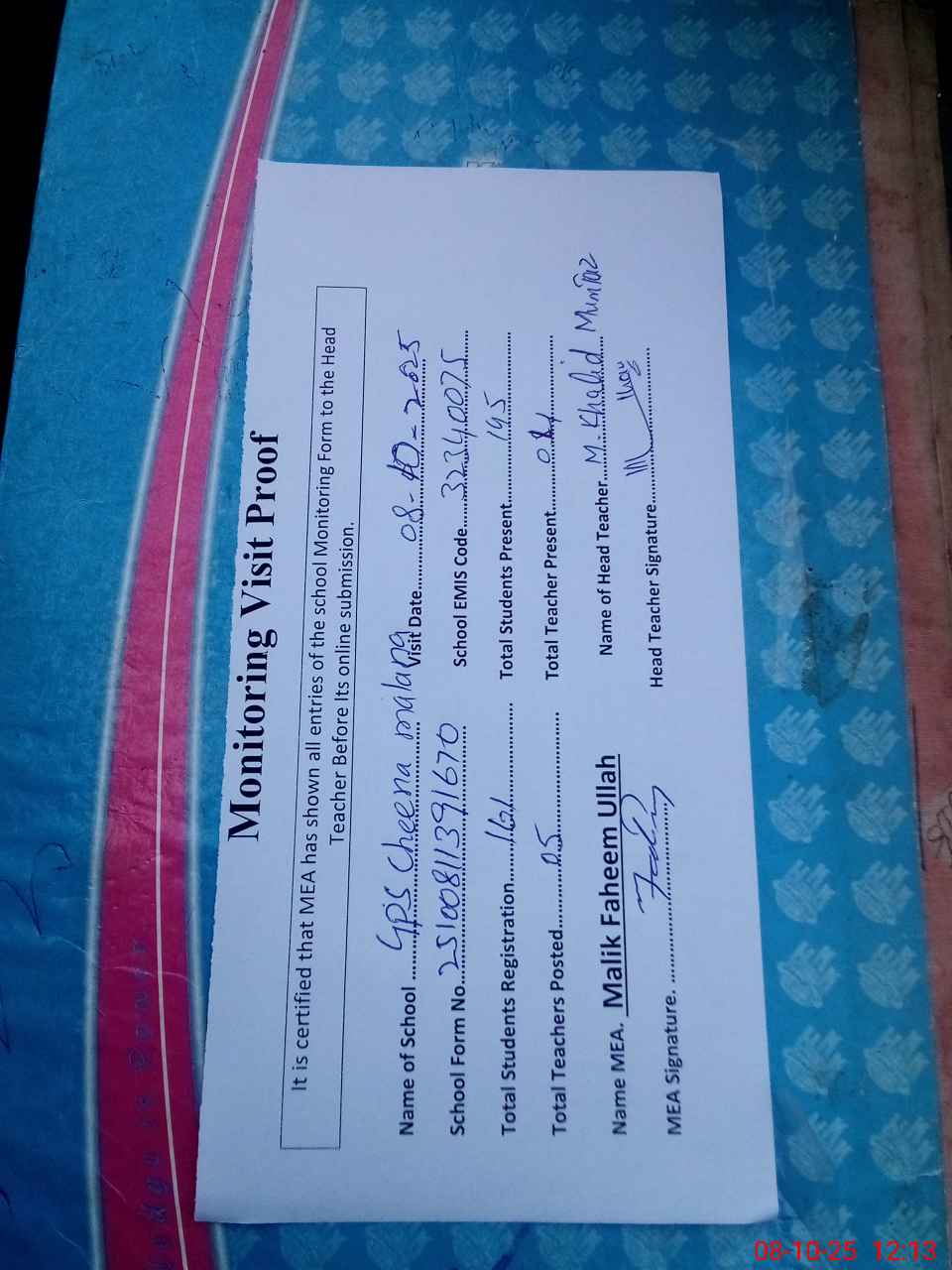 | EMIS Code: 32340075 | Name of School: GPS CHEENA MALANA | |||