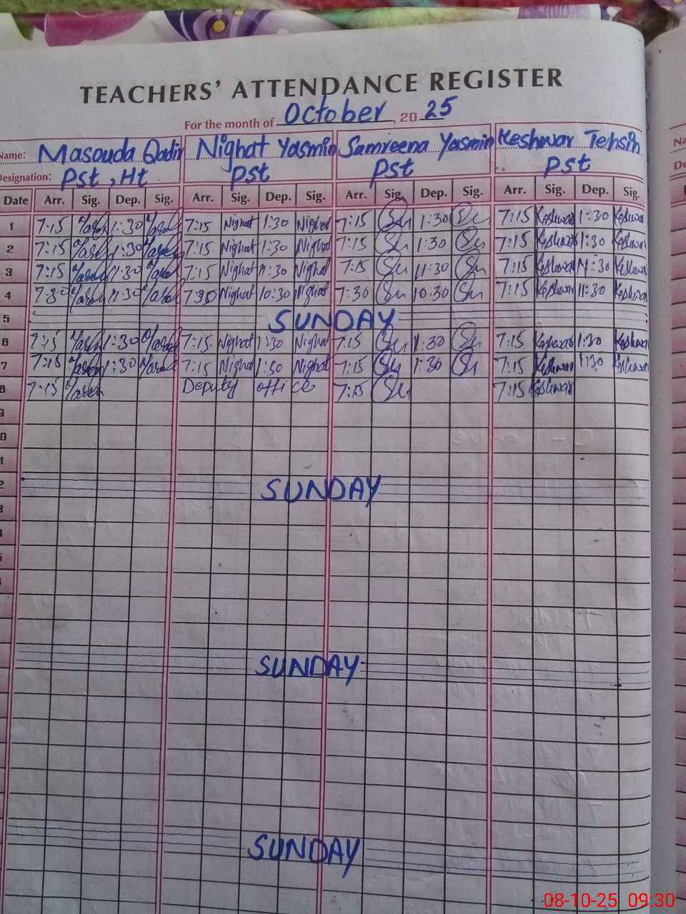 | Name: MA**** QA**** Designation: (School Headmaster's/Headmistress's) PST Phone/Cell Number: 03**** |