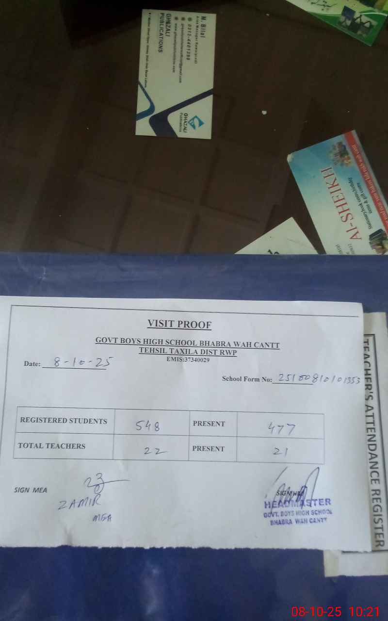 | EMIS Code: 37340029 | Name of School: GHS BHABRA WAH CANTT | |||