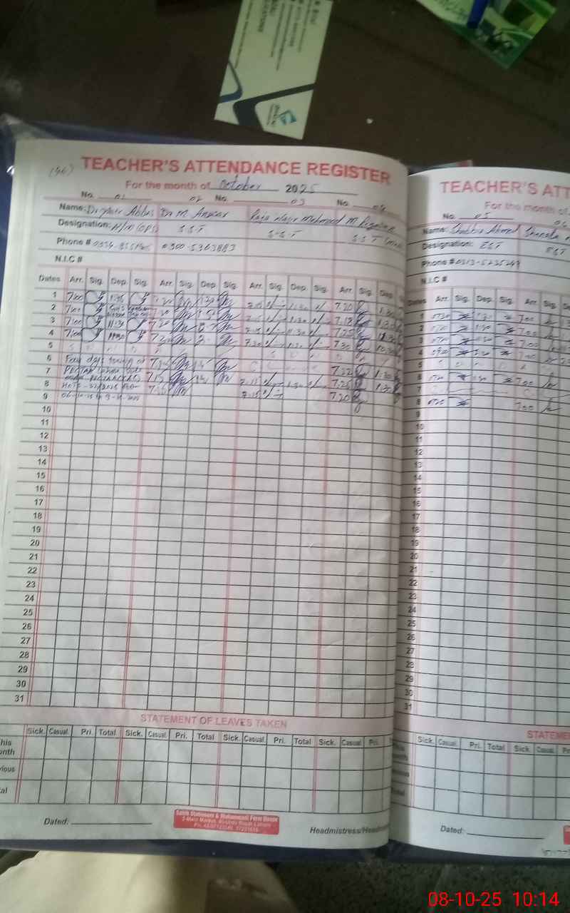 | Attendance Register | Head Teacher | MEA with School | Visit Proof |