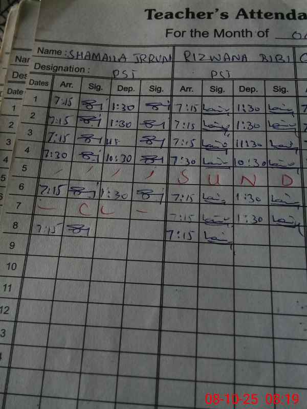 | Name: SH**** IR**** Designation: (School Headmaster's/Headmistress's) PST Phone/Cell Number: 03**** |