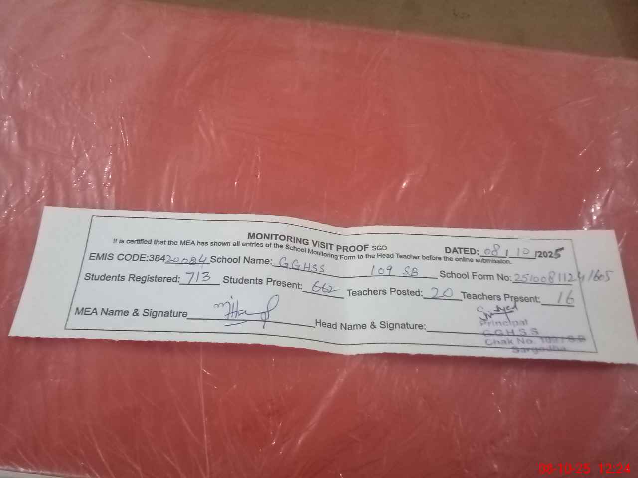 | EMIS Code: 38420084 | Name of School: GGHSS CHAK NO.109 SB | |||