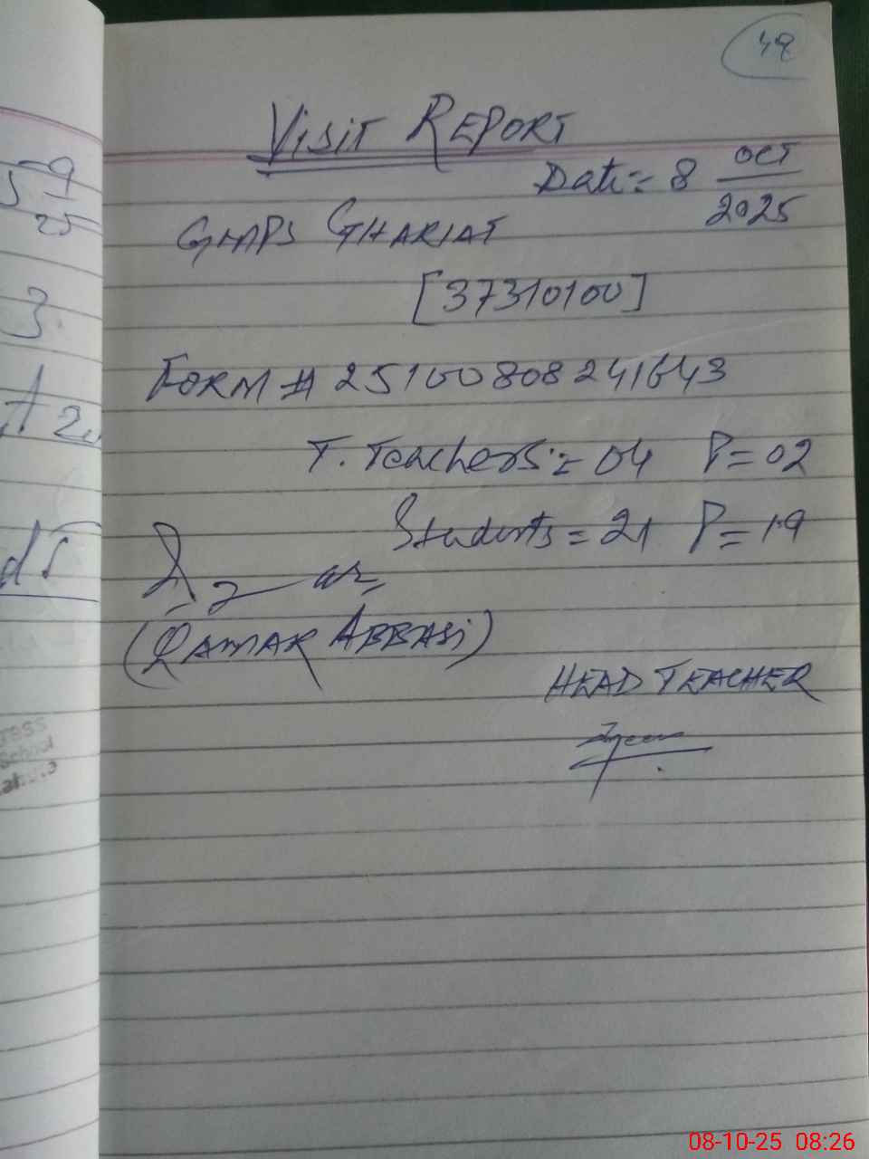 | EMIS Code: 37310100 | Name of School: GMPS GHARIAT | |||