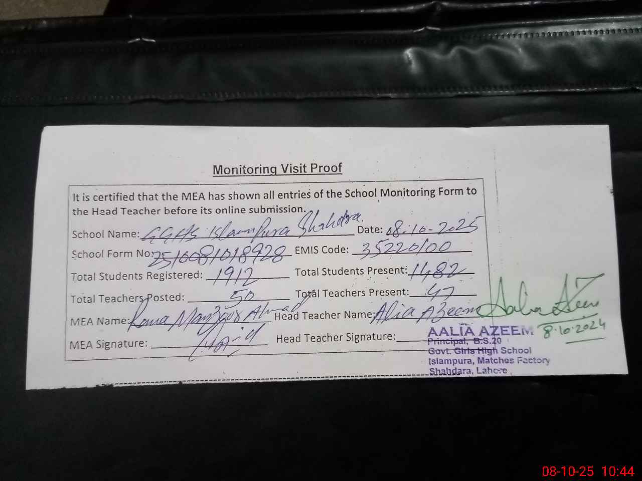| EMIS Code: 35220100 | Name of School: GGHS ISLAM PURA SHAHDARA NEAR MATCH FACTORY SHAHDARA | |||