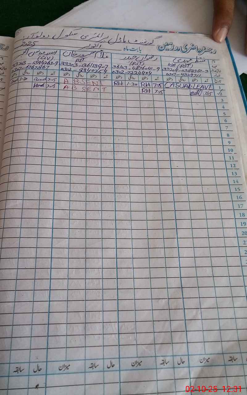 | 33**** | Gh**** Sa**** Kh**** | PST | Regular | 3 | 0 | 12 | 0 | 0 | 0 | 0 | 0 | 3 | Absent (Un-Authorized) |
