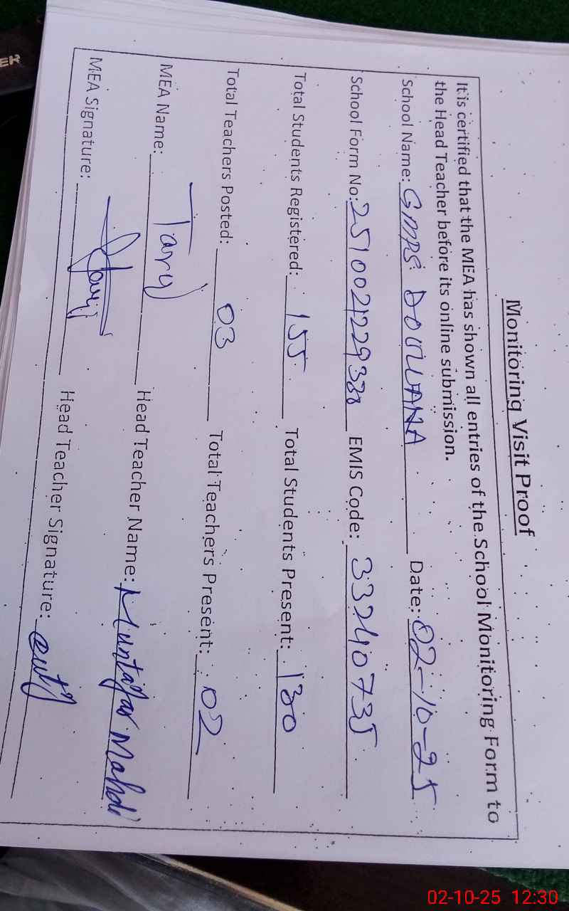 | EMIS Code: 33240735 | Name of School: GMPS DOULUANA | |||