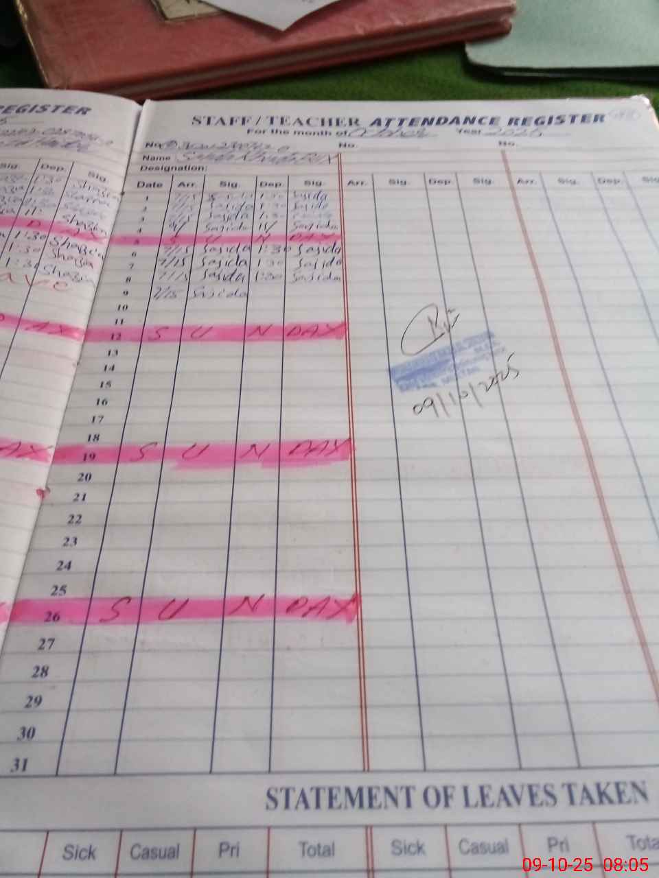 | Name: SA**** PE**** Designation: (School Headmaster's/Headmistress's) PST Phone/Cell Number: 03**** |