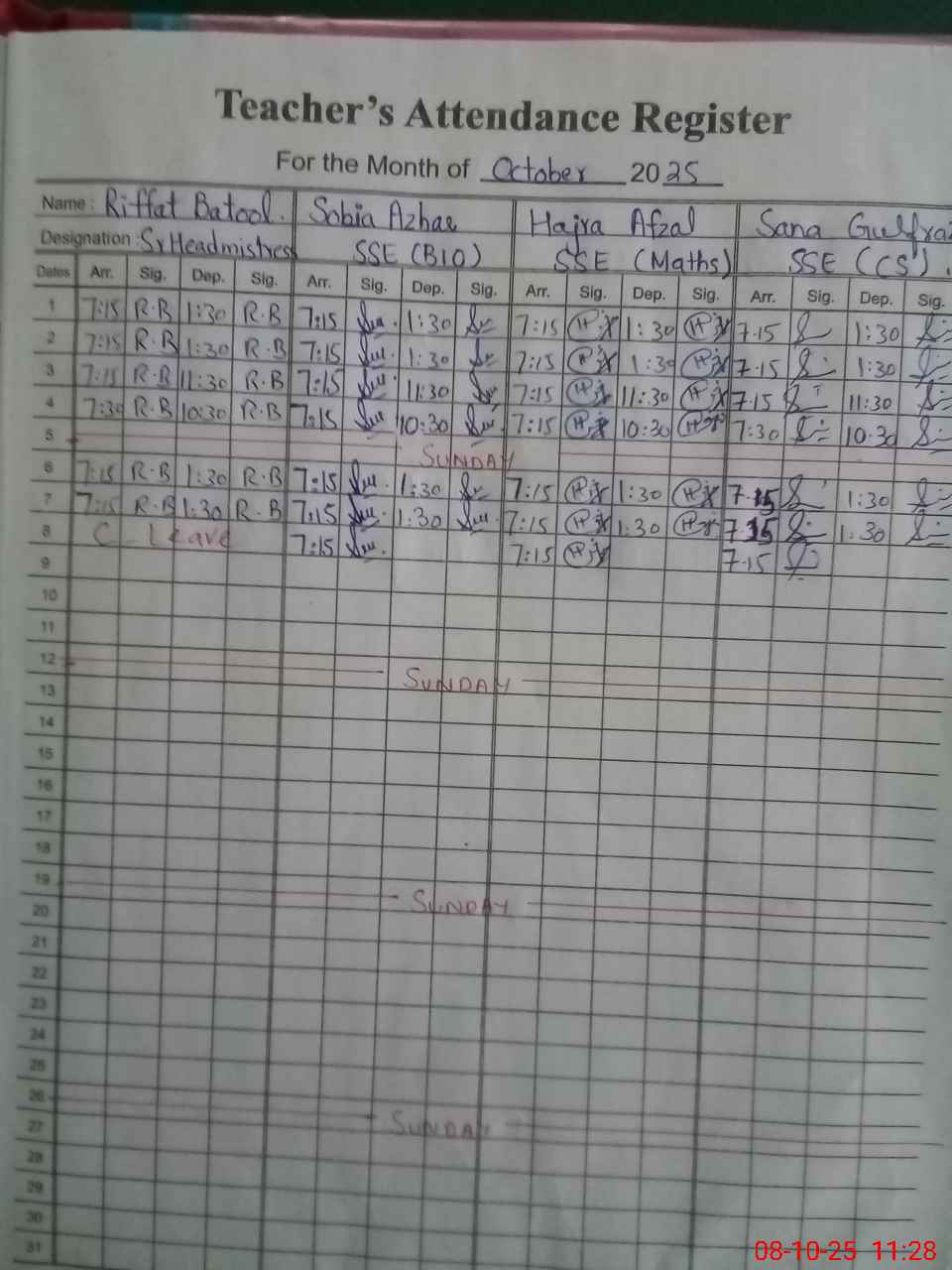 | 38**** | Ri**** Ba**** | Sr. Headmaster | Regular | 0 | 0 | 0 | 0 | 0 | 0 | 0 | 0 | 0 | Absent (Un-Authorized) |