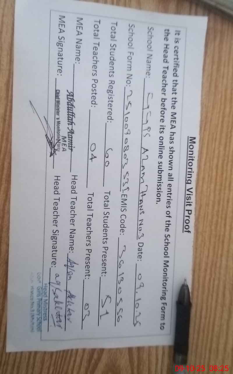 | EMIS Code: 36130556 | Name of School: GGPS AZAM HANS 3 KOTHA WALA | |||