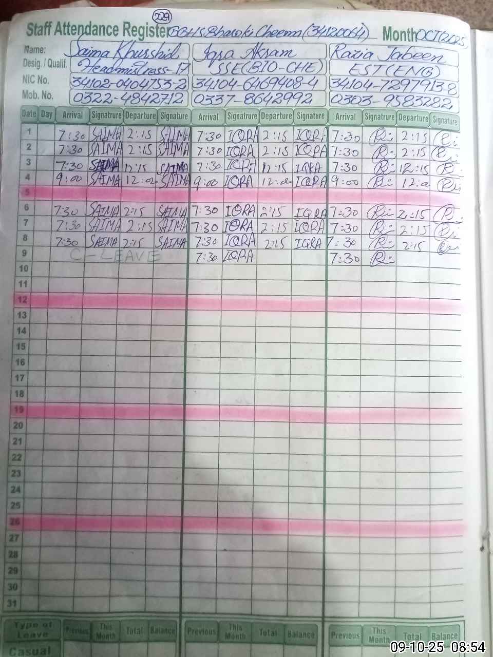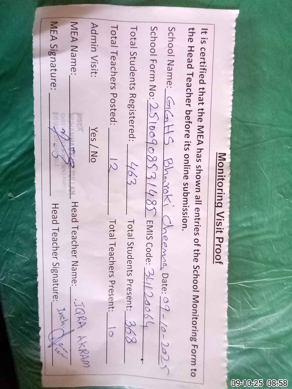 | EMIS Code: 34120064 | Name of School: GGHS BHAROKE CHEEMA | |||