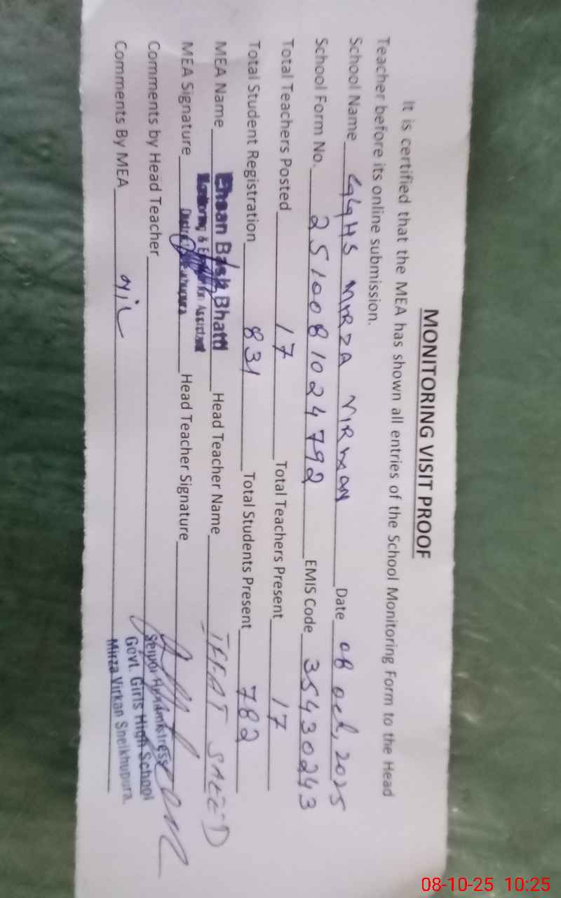 | EMIS Code: 35430243 | Name of School: GGHS MIRZA VIRKAN | |||
