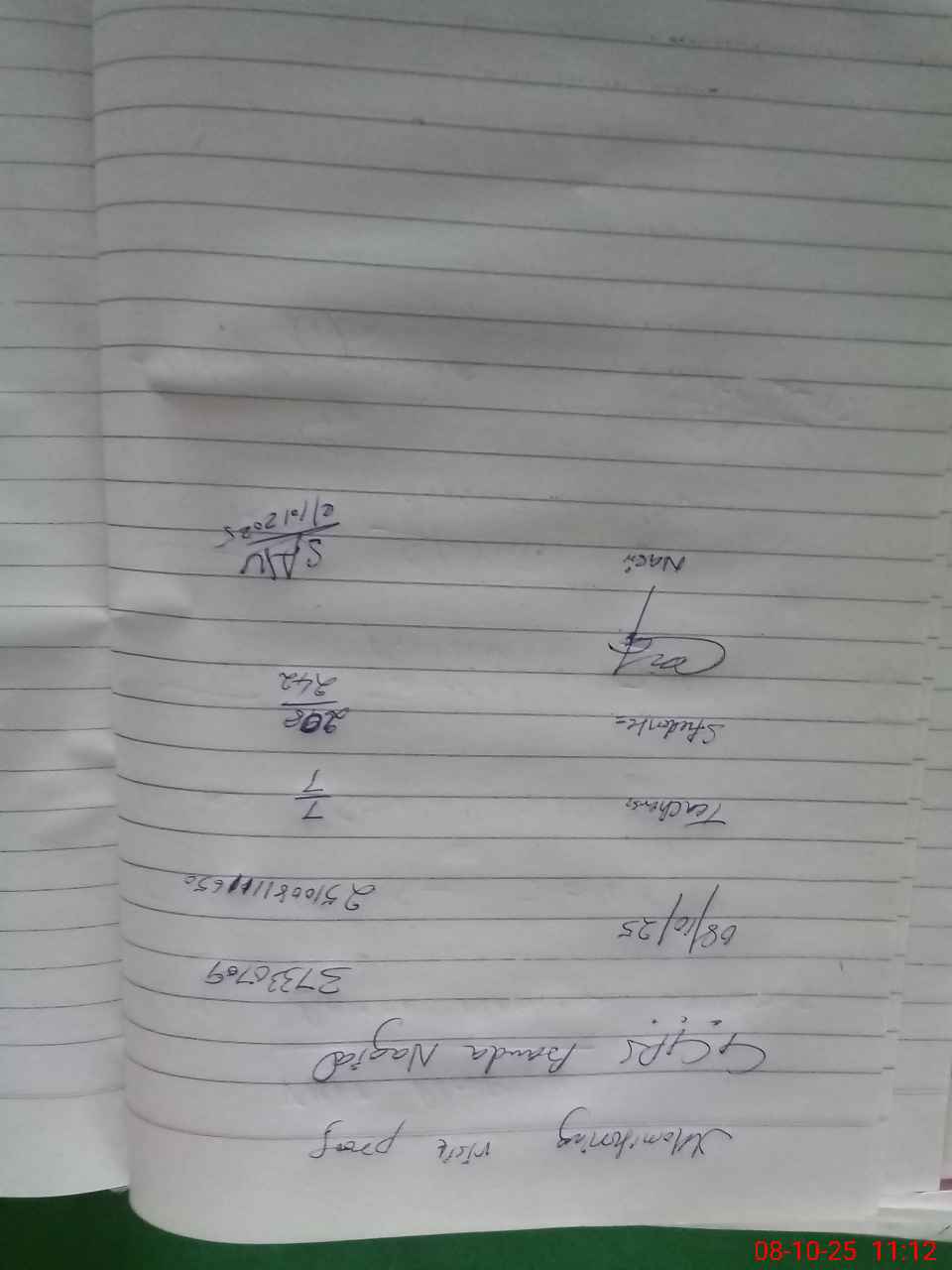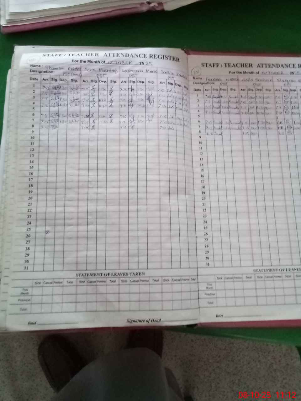 | Name: SH**** AK**** Designation: (School Headmaster's/Headmistress's) PST Phone/Cell Number: 03**** |