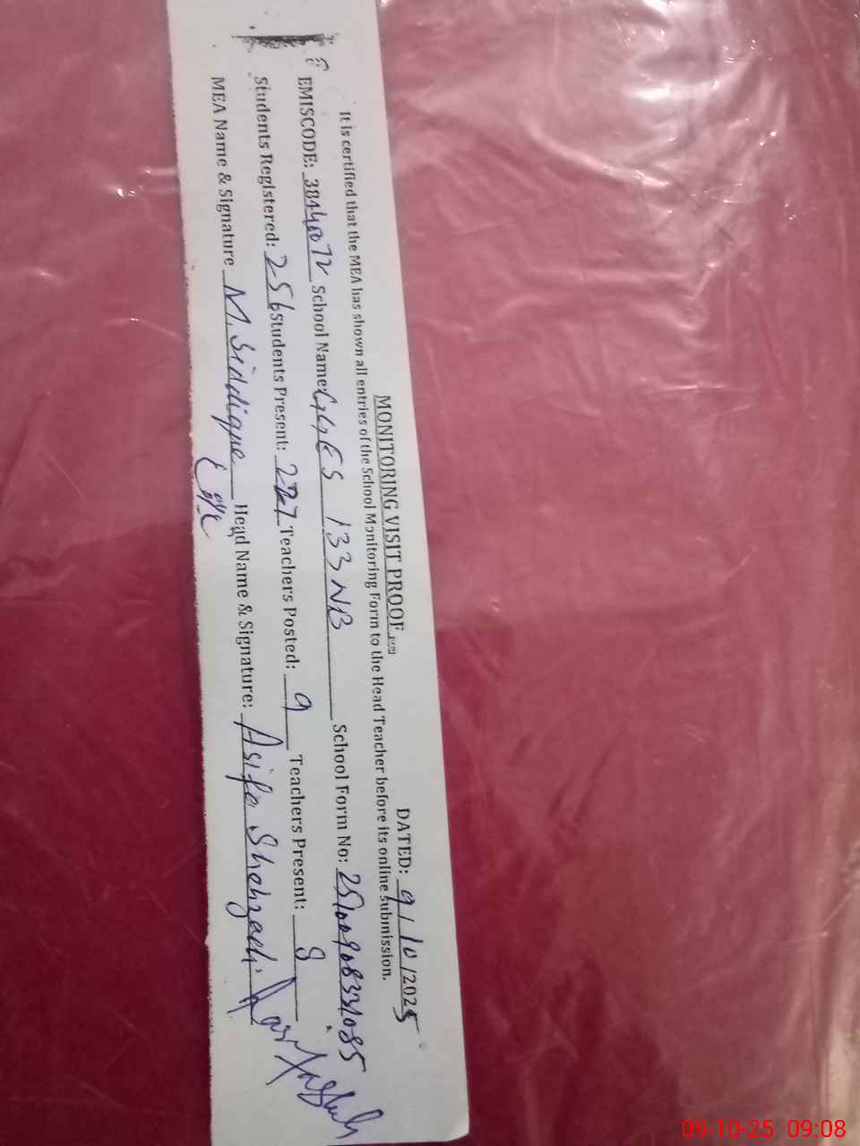 | Certified that this School was Inspected by the Undersigned MEA/DMO Today and the Information Stated Above is as Per Record. | |||||