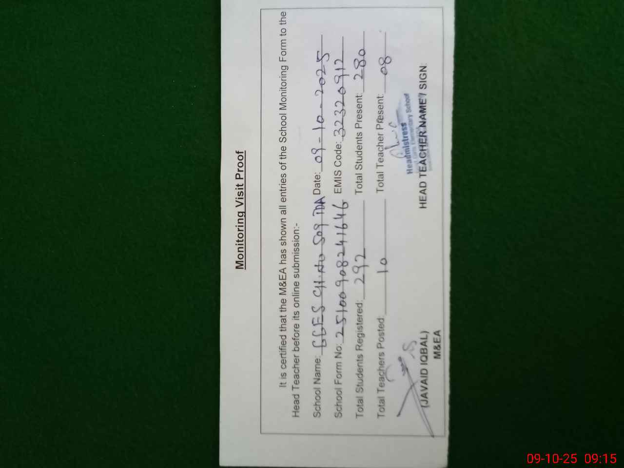 | EMIS Code: 32320912 | Name of School: GGES CHAK.NO. 509/TDA | |||