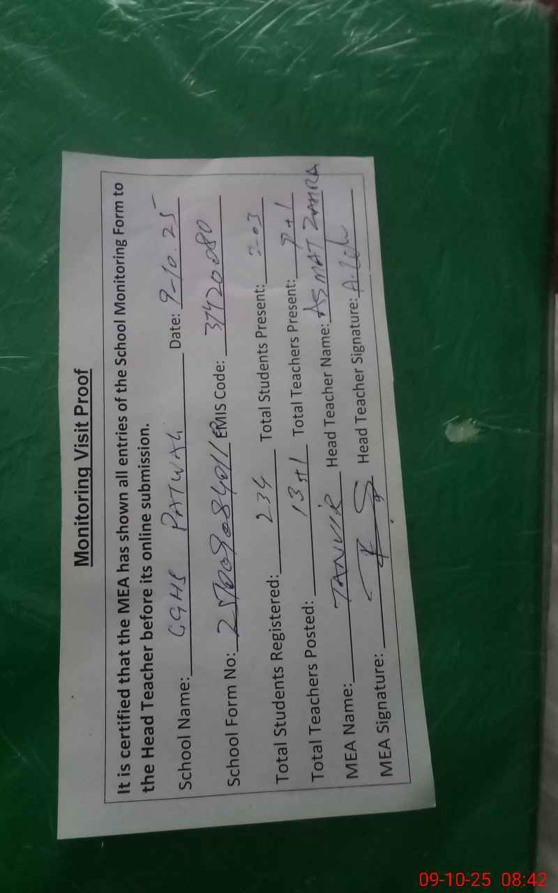 | EMIS Code: 37420080 | Name of School: GGHS PATWALI | |||